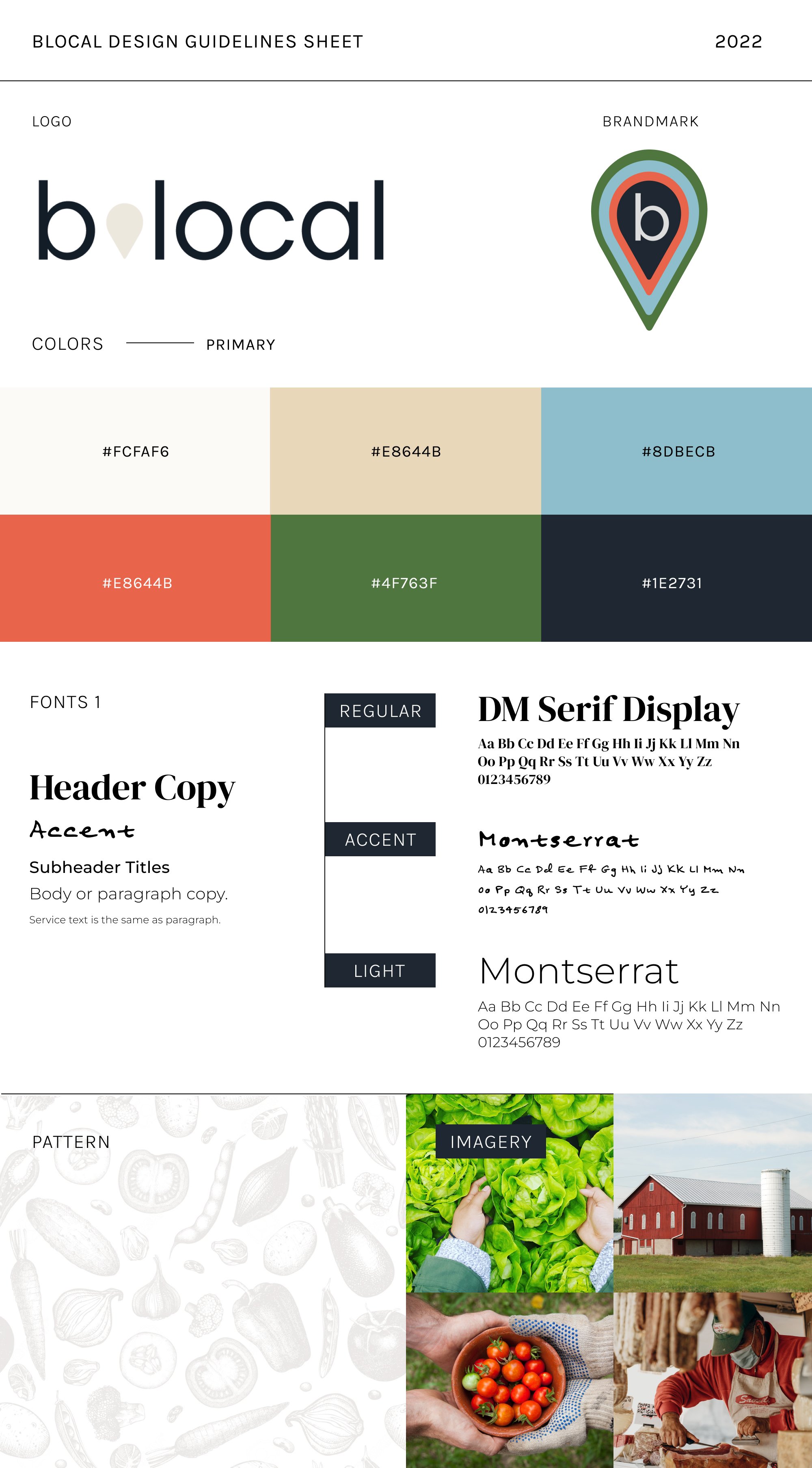 I was contracted to brand Blocal, an emerging startup dedicated to connecting consumers with local farmers and distributors of high-quality goods. The website offers a user-friendly platform where consumers can directly access fresh produce and other local goods, fostering a seamless connection between buyers and sellers. The new design aims to enhance the overall user experience while aligning with BLocal's mission of supporting local communities and promoting sustainable consumption.