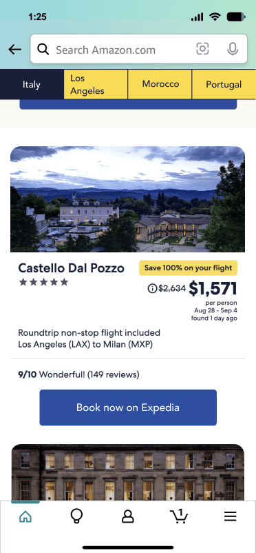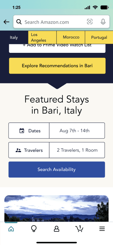 Exploratory research was conducted on various approaches to travel ideation. This was a novel online experience for Amazon and the broader retail industry, as they pioneered the integration of travel booking as a cross-platform partnership within a retail website. Due to the pioneering nature of this initiative, there was limited competitive research that could be leveraged.
