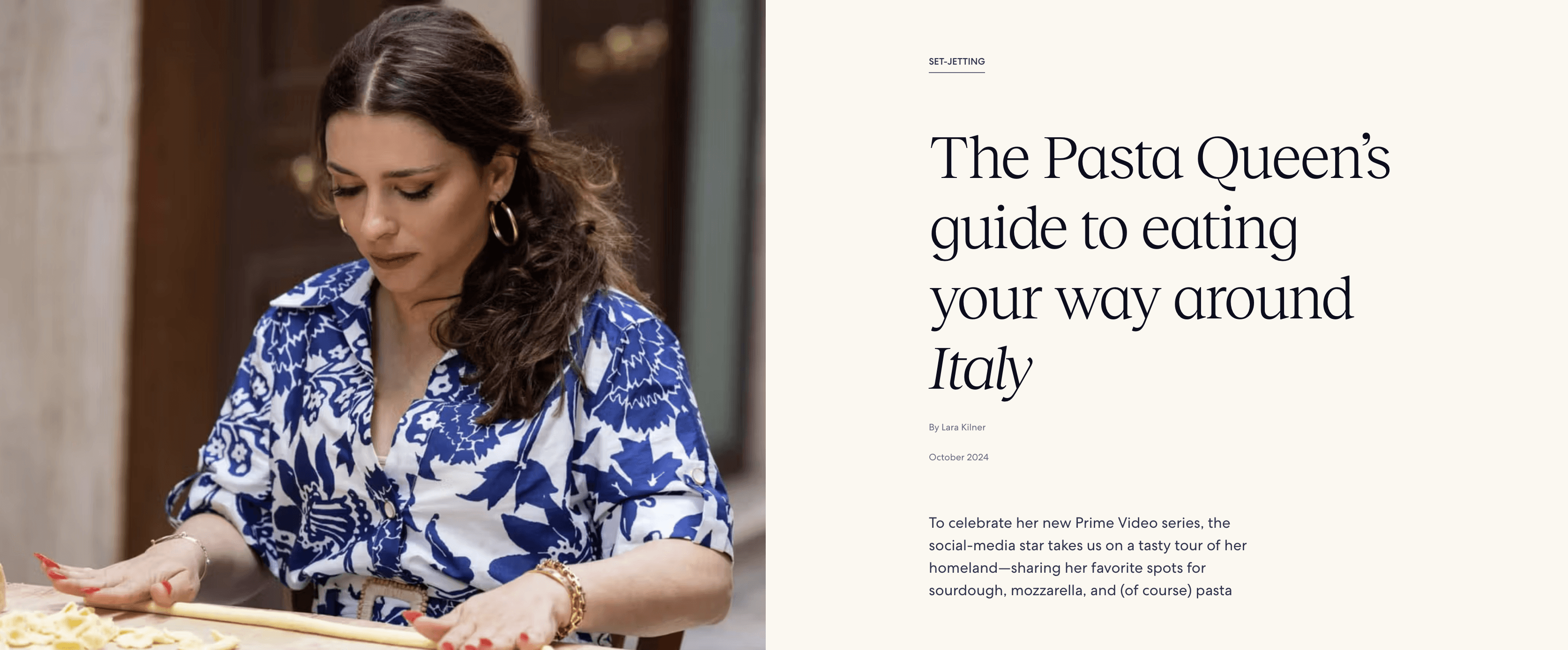 Created a flexible template accommodating both episode-specific content (Italy) and general destination content (LA, Portugal, Morocco).