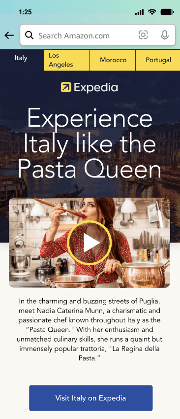 Within the "crawl" phase, which features Expedia-branded destination guides coupled with watchlists of Amazon shows and movies set in Los Angeles, Morocco, and Portugal, the campaign had reached 61M people and drove 43K bookings on Expedia.com. Users are interested in an ingress point that exists within their favorite media and will take action to journey off of that platform to another screen. Partnerships can exist outside of the same vertical and can be even more impactful when combined.
