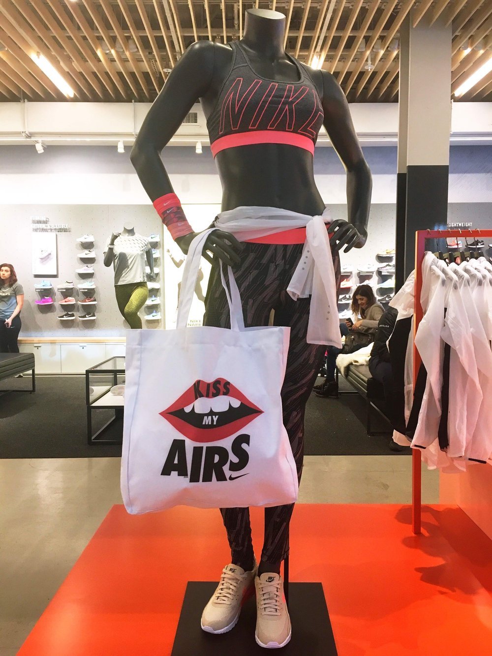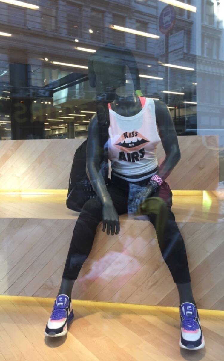 During my sophomore year at FIT, I was approached by Nike to create illustrated branded logo merchandise for Nike Air Month, to be sold at the flagship Soho store. One of my designs, my "Kiss My Airs" lip design, quickly became popular, selling hundreds of pieces. My aim with this design was to cater to consumers who aren't typically into everyday fitness clothing. I saw this as a chance to connect with the younger consumer demographic, much like myself at the time, living in Brooklyn and seeking out edgier and more illustrated pieces.